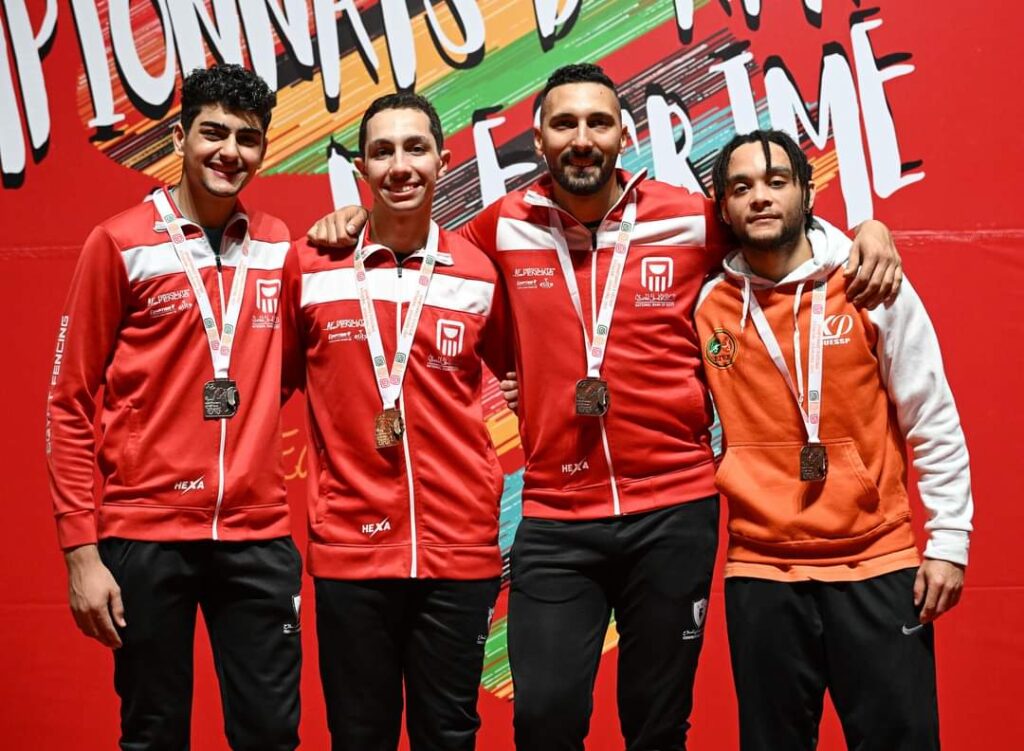 وحصد الميداليات البرونزية كلًا من: “زياد السيسي لاعب سلاح السيف، محمد ياسين لاعب سلاح سيف المبارزة، آية شريف لاعبة سلاح سيف المبارزة، شيرويت جابر لاعبة سلاح سيف المبارزة، نهى هاني لاعبة سلاح الشيش، وملك حمزة لاعبة سلاح الشيش، علاء أبو القاسم لاعب سلاح الشيش، ريناد الدكش لاعبة سلاح السيف، ندى حافظ لاعبة سلاح السيف “.