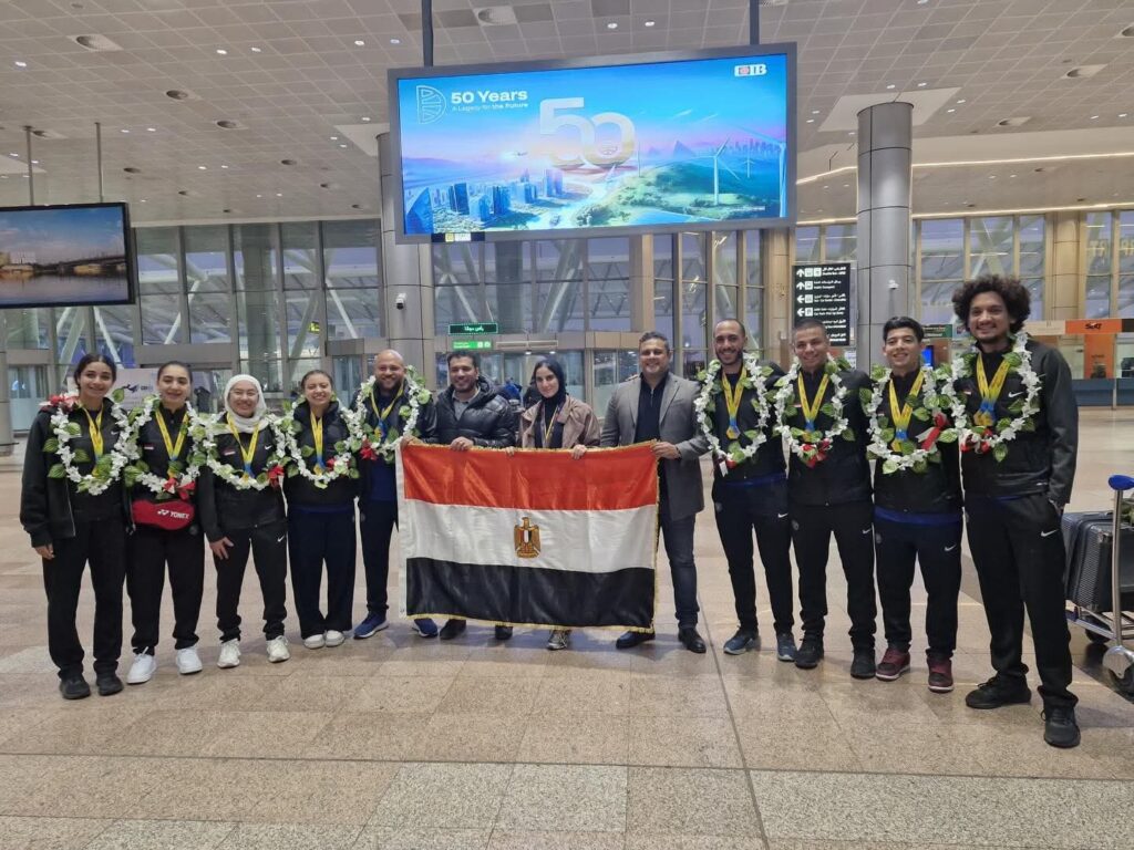 وكان في استقبال بعثة المنتخب كل من كريم شديد نائب رئيس الاتحاد المصري للريشة الطائرة، وشريف جعفر سكرتير عام الاتحاد، ومنة الله طناني عضو مجلس إدارة الاتحاد، حيث حرصوا على تهنئة اللاعبين والجهاز الفني على الإنجاز الكبير الذي تحقق.