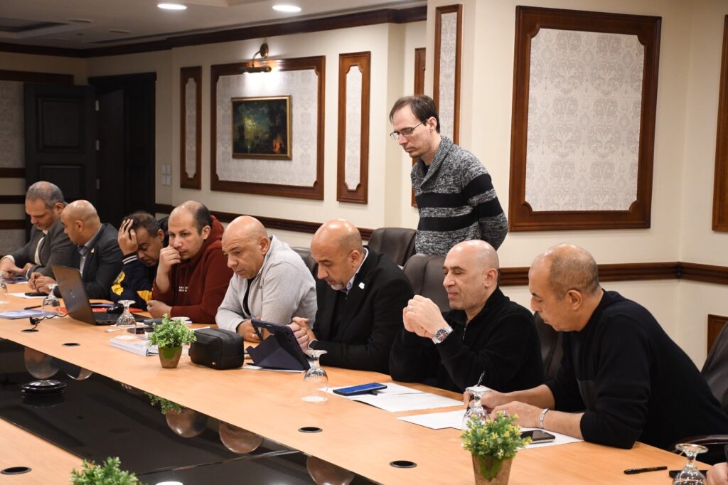 ويضم وفد الاتحاد الدولي برئاسة خالد مهلهل نائب رئيس الاتحاد الدولي ورئيس الاتحاد الأفريقي، كلًا من منار الدين الشيلي أمين عام الاتحاد الأفريقي، إلى جانب مسؤولي الاتحاد الدولي: ماتياس لينسير مدير البطولات، وتيميا هورفاس مديرة التخطيط، وأكيلياس توجاس المدير التنفيذي، وزولتان فيريس مسؤول تكنولوجيا المعلومات.