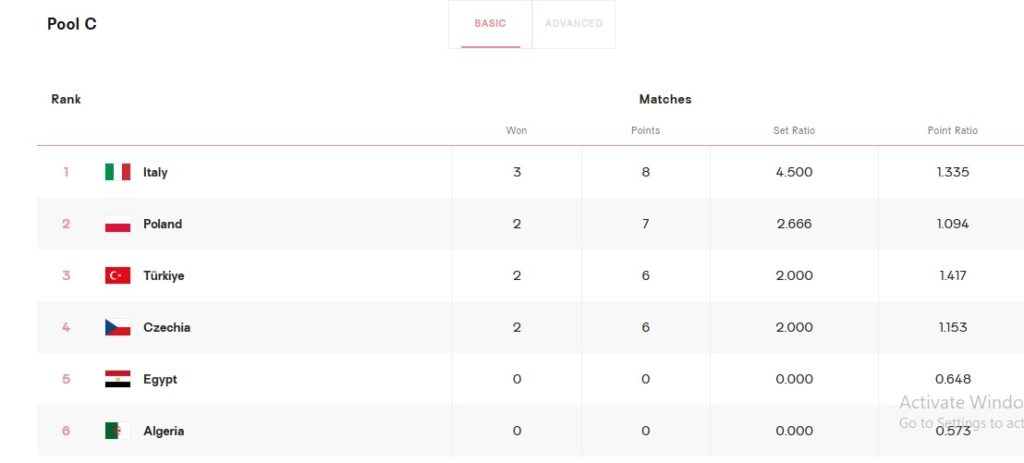 ترتيب مجموعة مصر في بطولة العالم للكرة الطائرة تحت 21 سنة: