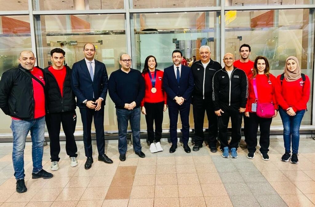 بعد انجاز فريدة عثمان ومها عامر في بطولة العالم .. استقبال رسمي لبعثة منتخب السباحة