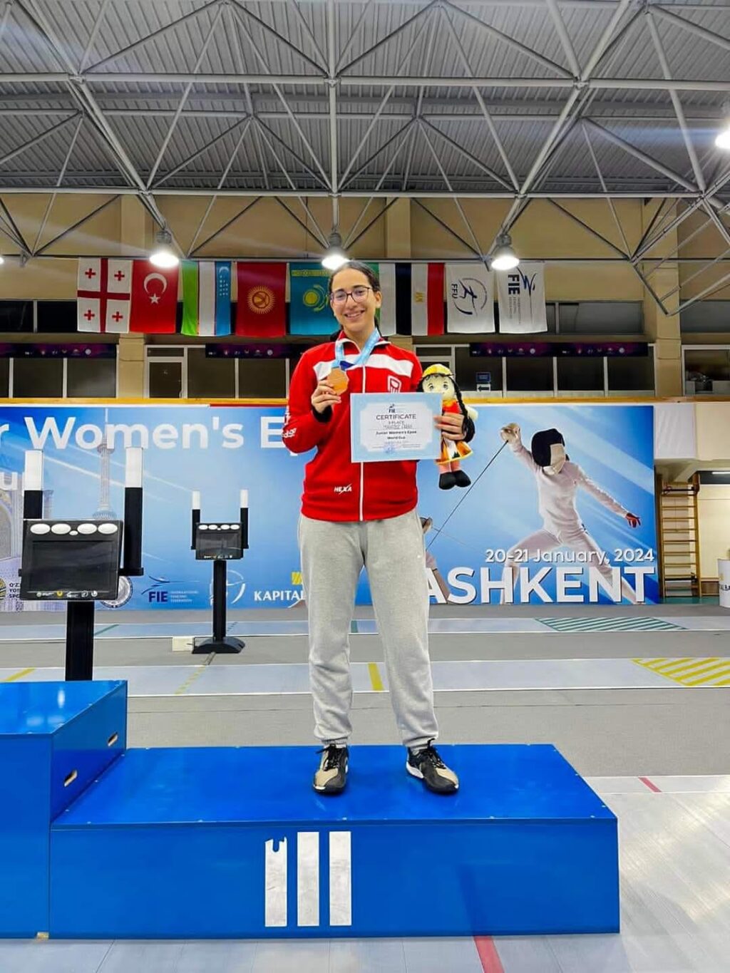 توجت فرح محفوظ ببرونزية كأس العالم لسلاح سيف المبارزة ناشئات تحت 20 سنة، والتي تستضيفها أوزبكستان في الفترة من 19 حتى 20 يناير الجاري.