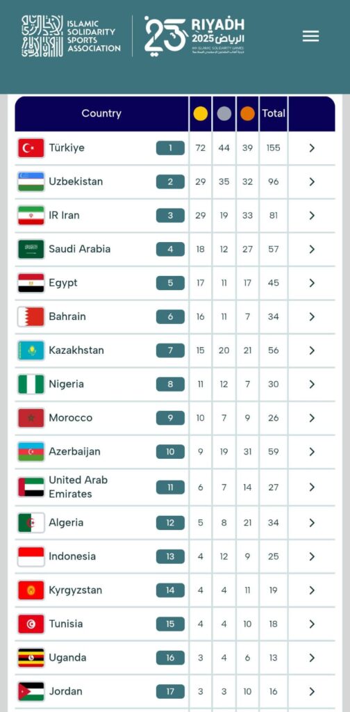 مصر تنهي مشاركتها في دورة ألعاب التضامن الإسلامي بـ 45 ميدالية في المركز الخامس