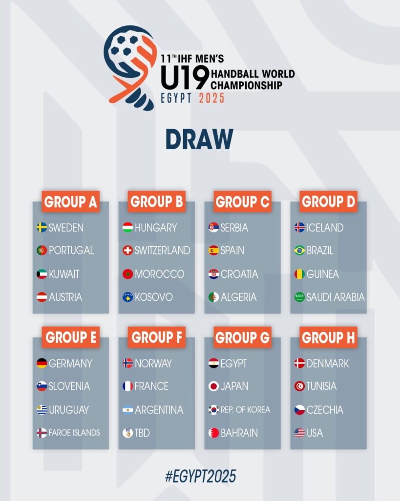 نتائج قرعة بطولة العالم لكرة اليد للناشئين بمشاركة 32 منتخبًا