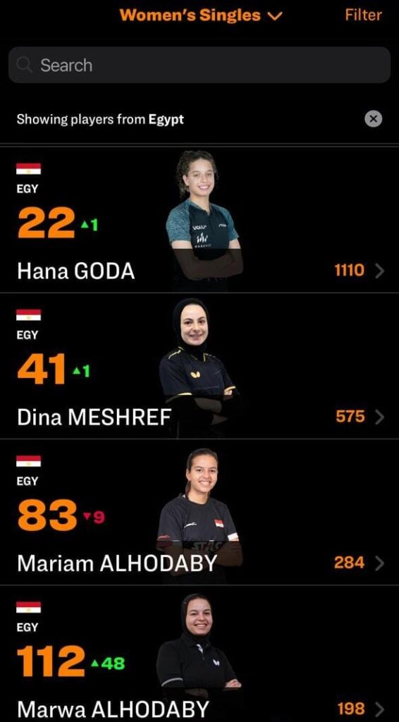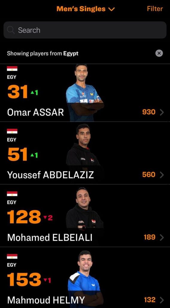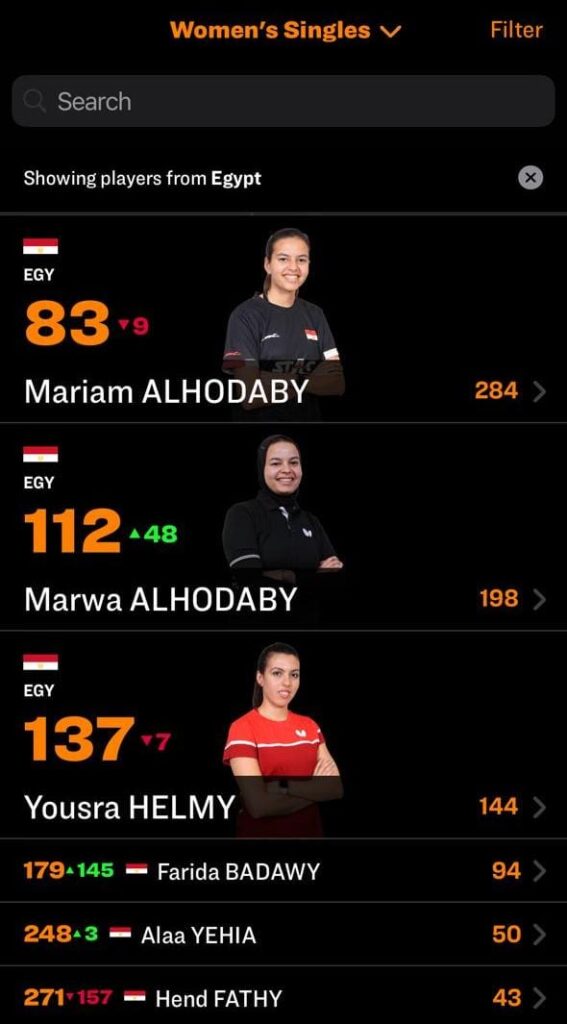 التصنيف الدولي لتنس الطاولة.. تعرف على مراكز المصريين