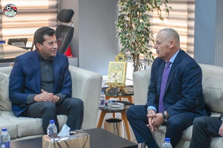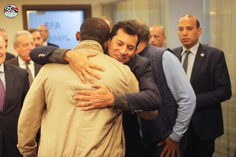 التقي الدكتور أشرف صبحي وزير الشباب والرياضة ، صمويل ايتو نجم الكرة الكاميرونية ورئيس اتحاد الكرة الكاميروني علي هامش زيارة...
