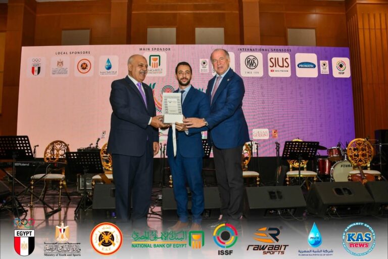 كرم اللواء حازم حسني رئيس الاتحادين المصري والافريقي الاستاذ محمد عادل حسني رئيس مجلس ادارة شركة الشبه المصرية راعي الاتحاد...