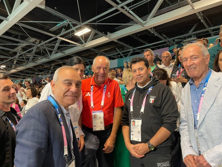 وجه المهندس ياسر ادريس رئيس اللجنة الأولمبية المصرية التهنئة للاعبى منتخب مصر لكرة اليد بعد الفوز على المجر فى ضربة...