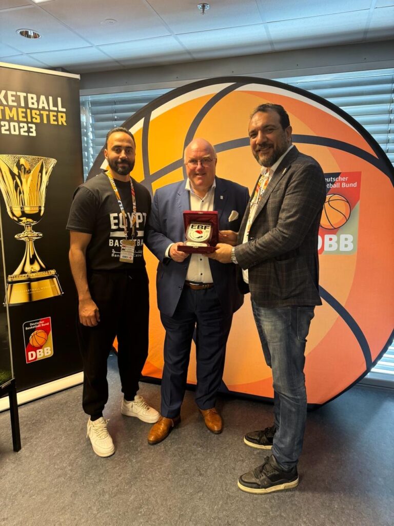 محمد فتحي يكرم رئيس الاتحاد الألماني للسلة على هامش بطولة ألبرت شفايترز قام محمد فتحي عضو مجلس إدارة الاتحاد المصري...