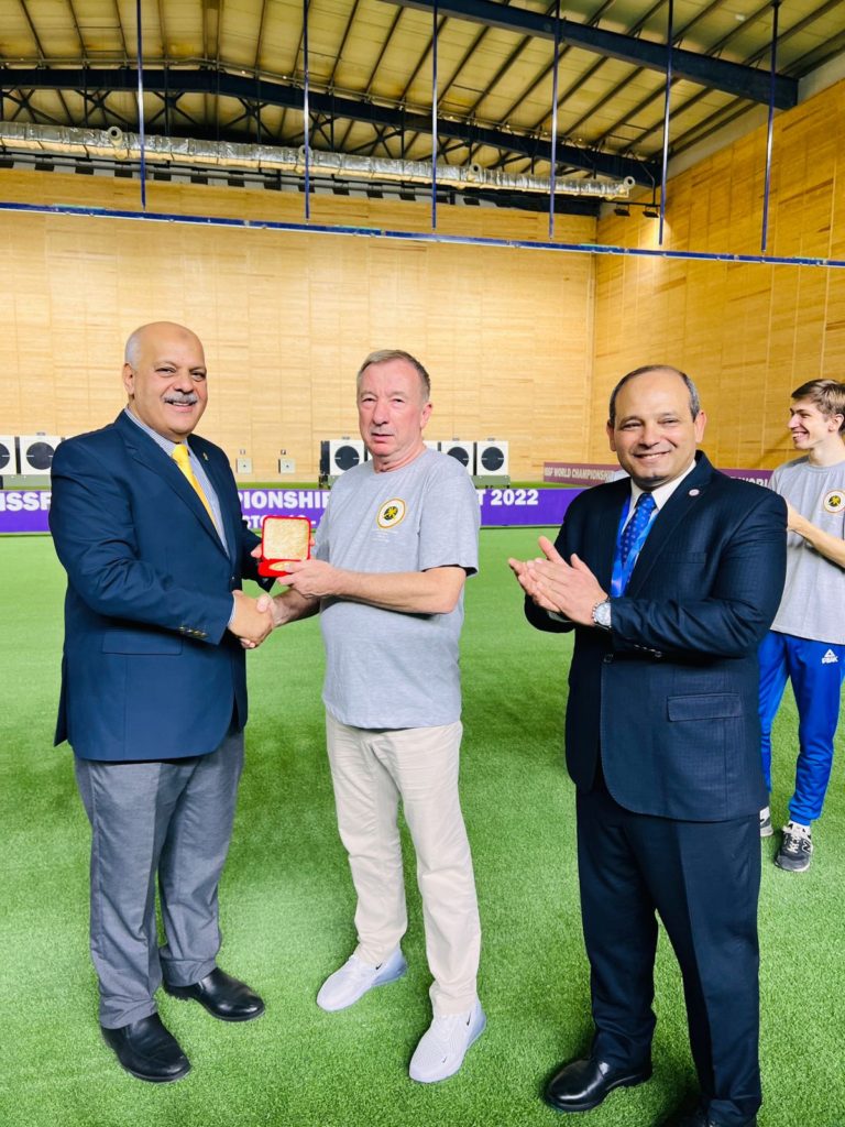 حرص حازم حسني رئيس الاتحاد المصري والإفريقي للرماية على تكريم رئيس الوفد الاوكراني والرماه الاوكرانيين على هامش فاعليات بطولة العالم...