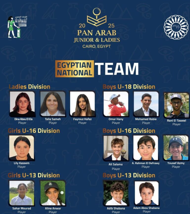 أعلن الاتحاد المصري للجولف برئاسة عمر طلعت مصطفى عن تشكيلته الكاملة لتمثيل مصر في بطولة العرب للناشئين والسيدات للجولف، التي...