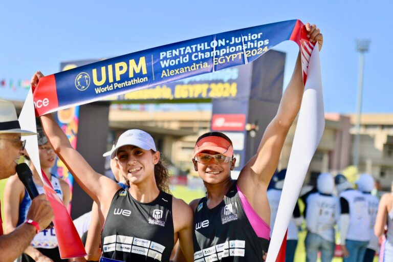 توج الزوجي المصري المكون من فريدة أبو هاشم وزينة عامر بالميدالية الذهبية لمنافسات تتابع السيدات ببطولة العالم للناشئين للخماسي الحديث،...