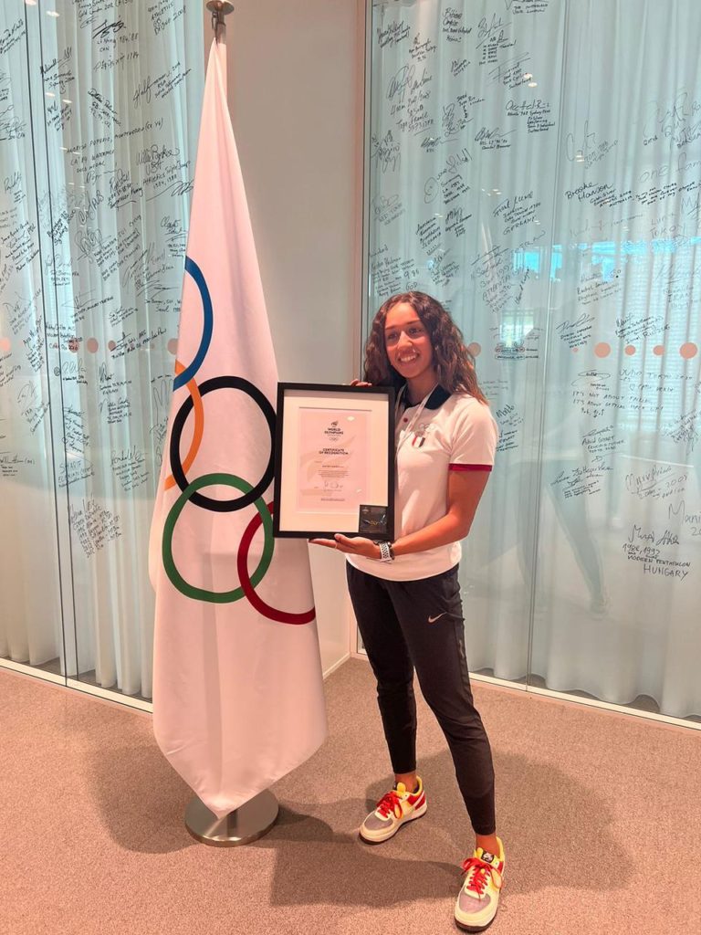 لبت هايدي عادل لاعبة المنتخب الوطني للخماسي الحديث واللاعبة الأولمبية دعوة اللجنة الأولمبية الدولية لزيارة حائط اللاعبين الأولمبيين والمشاهير في...
